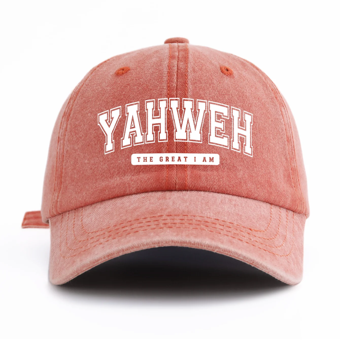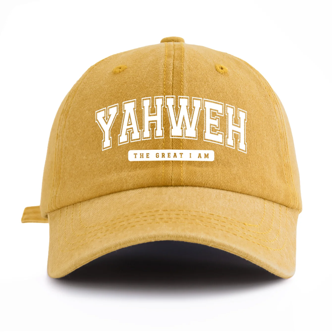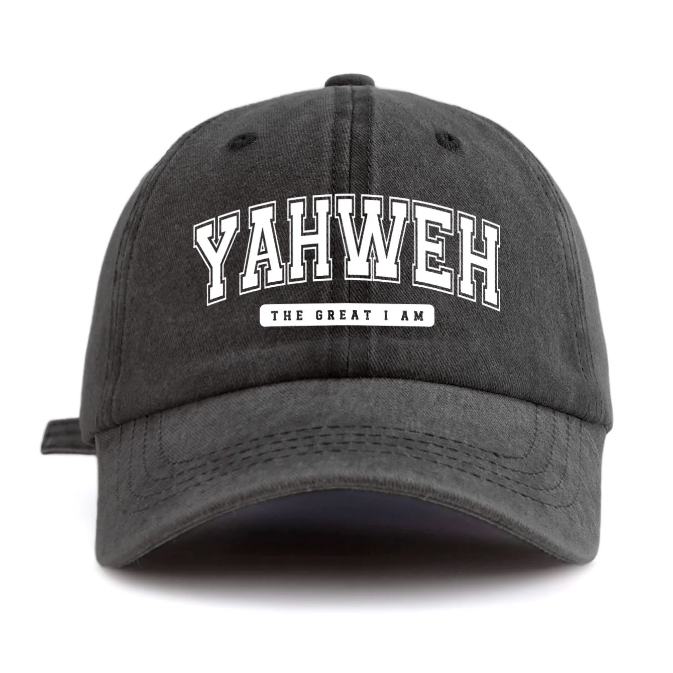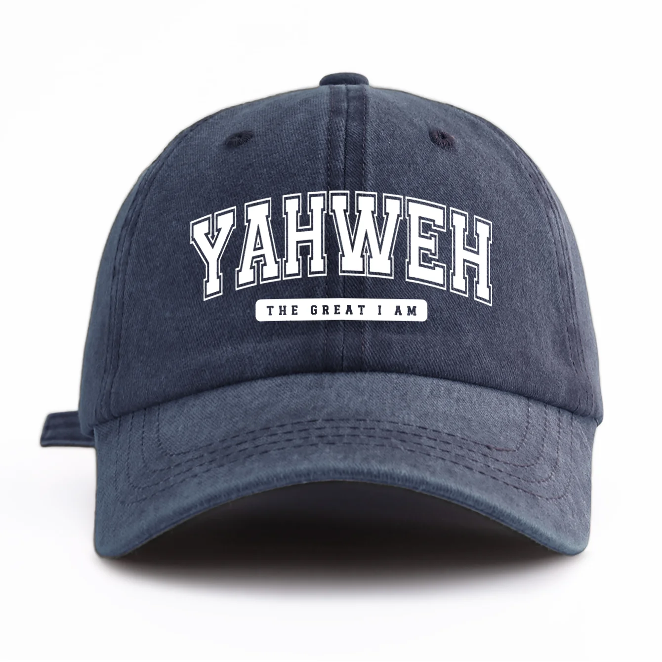 Bonés unisex com estampa YAHWEH, de poliester e algodão "estilo jeans", com costura reforçada. Disponível em diversas cores. -