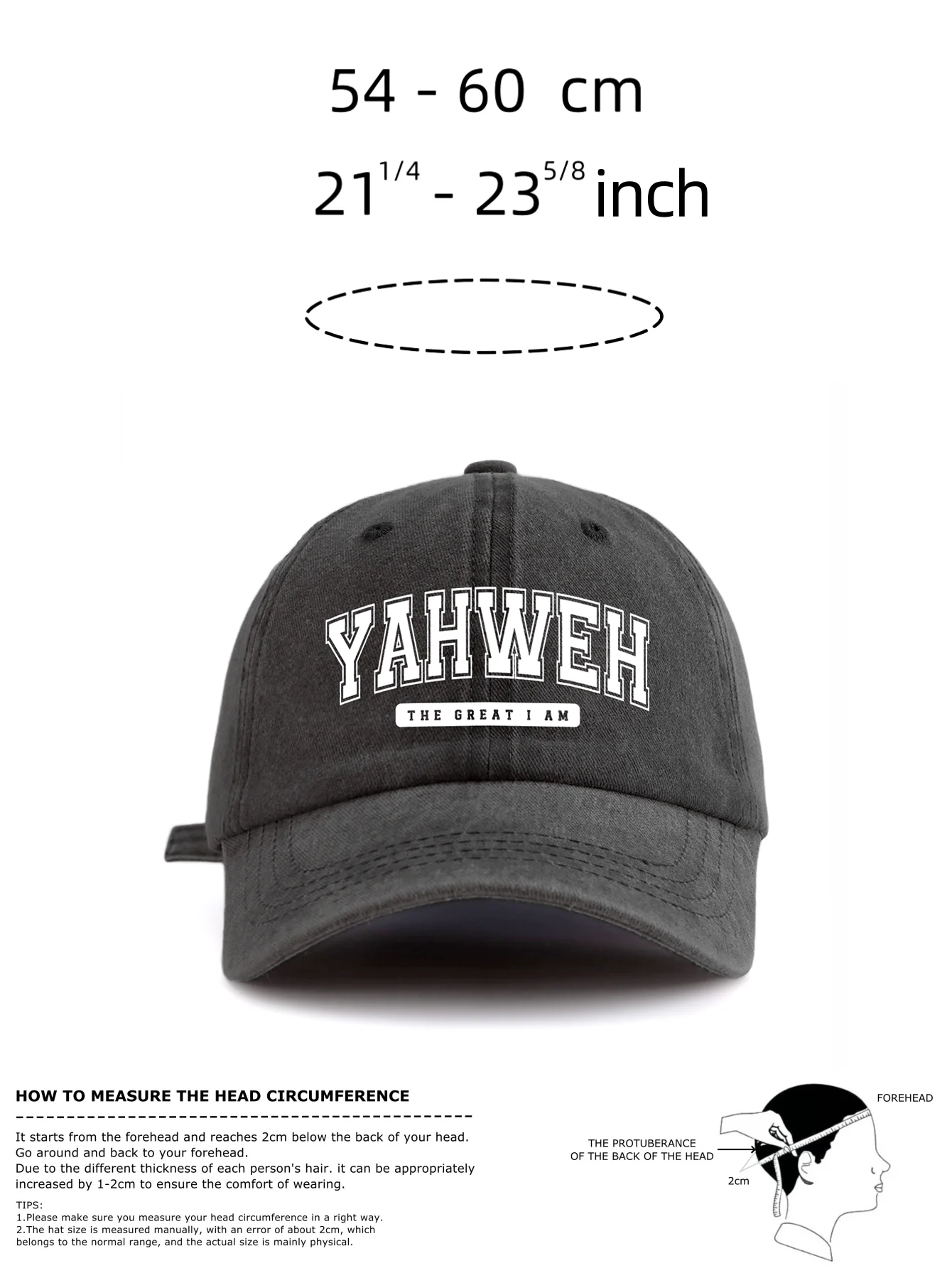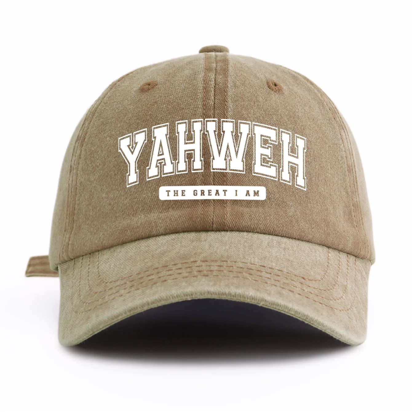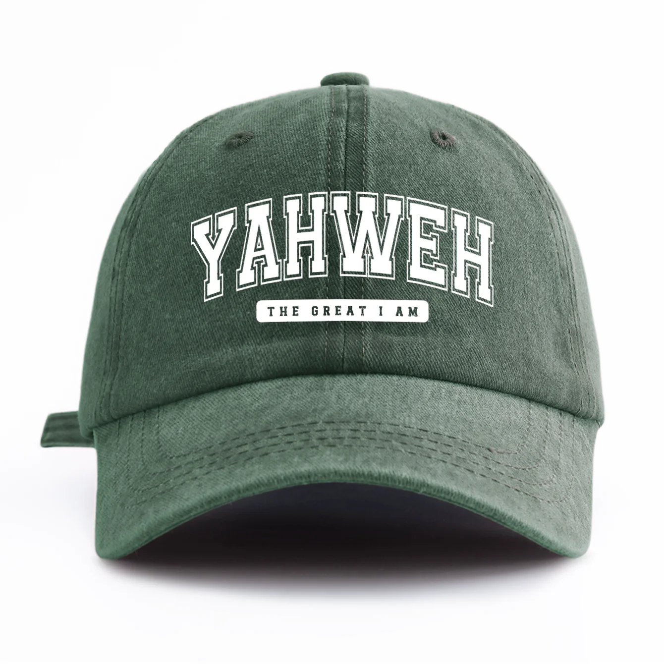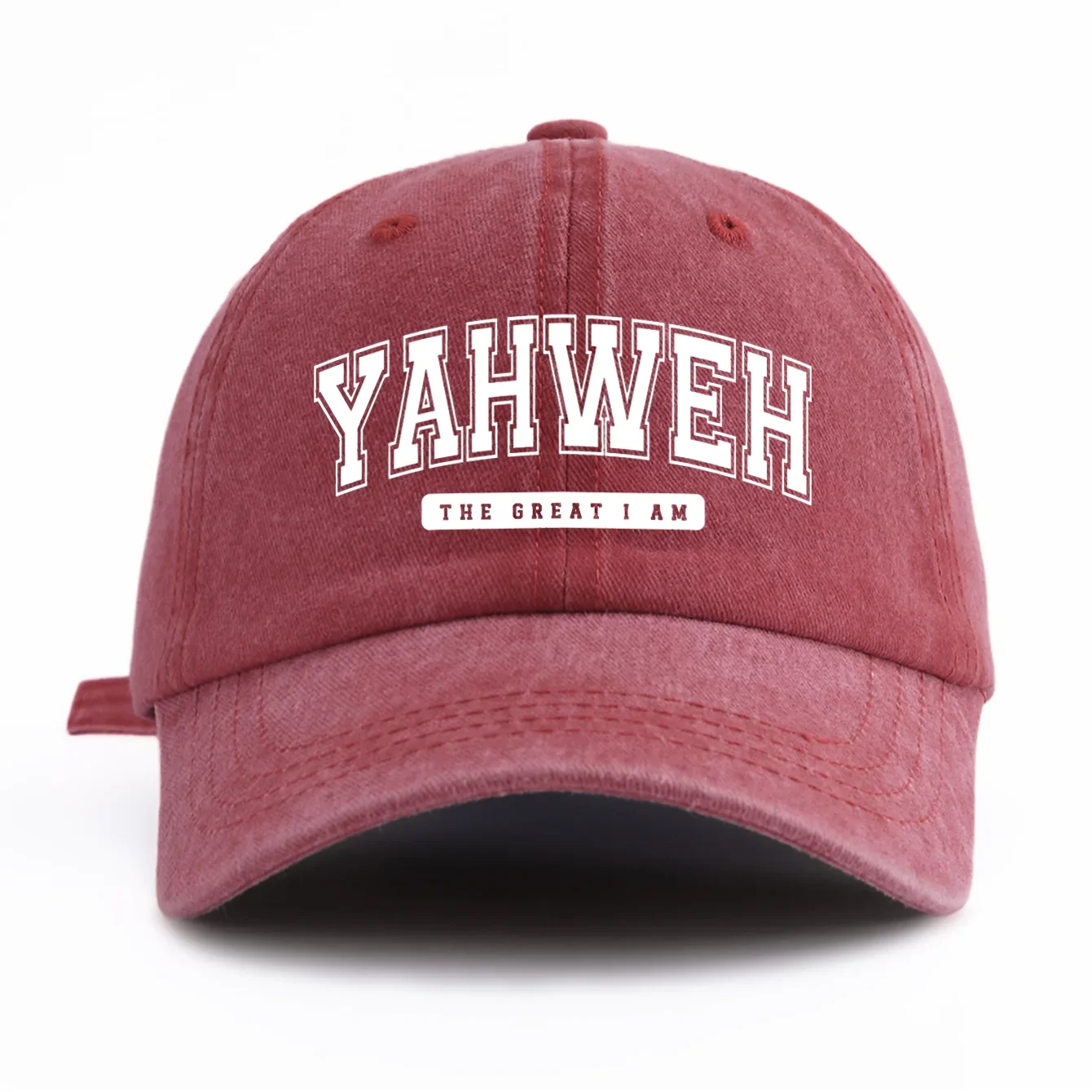 Bonés unisex com estampa YAHWEH, de poliester e algodão "estilo jeans", com costura reforçada. Disponível em diversas cores. -