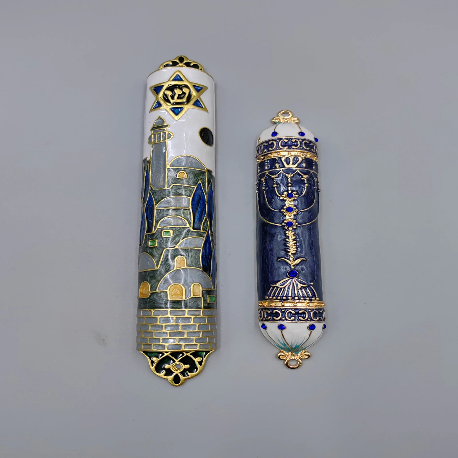 Mezuzah artesanal de metal e esmalte