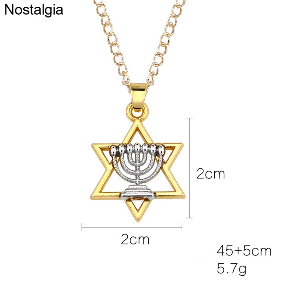 Lindo colar com pingente em aço Inox polido, em forma da estrela de Davi em cor dourada, com uma menorah prata ao centro. Uma peça elegante que une beleza, significado e espiritualidade, perfeita para expressar sua fé com estilo no dia a dia ou em ocasiões especiais. Um acessório marcante, ideal também para presentear alguém especial com algo cheio de simbolismo e sofisticação.