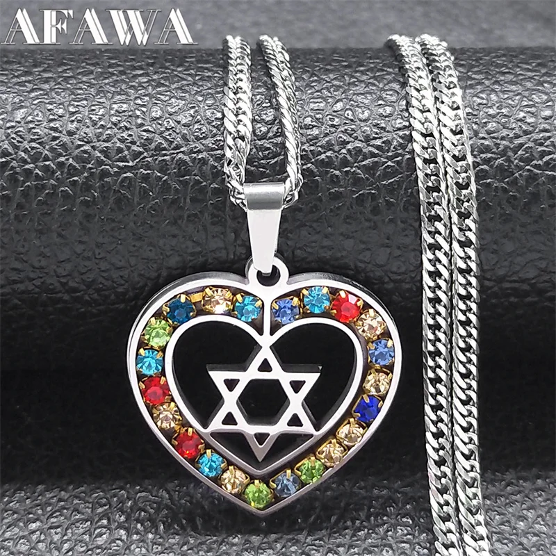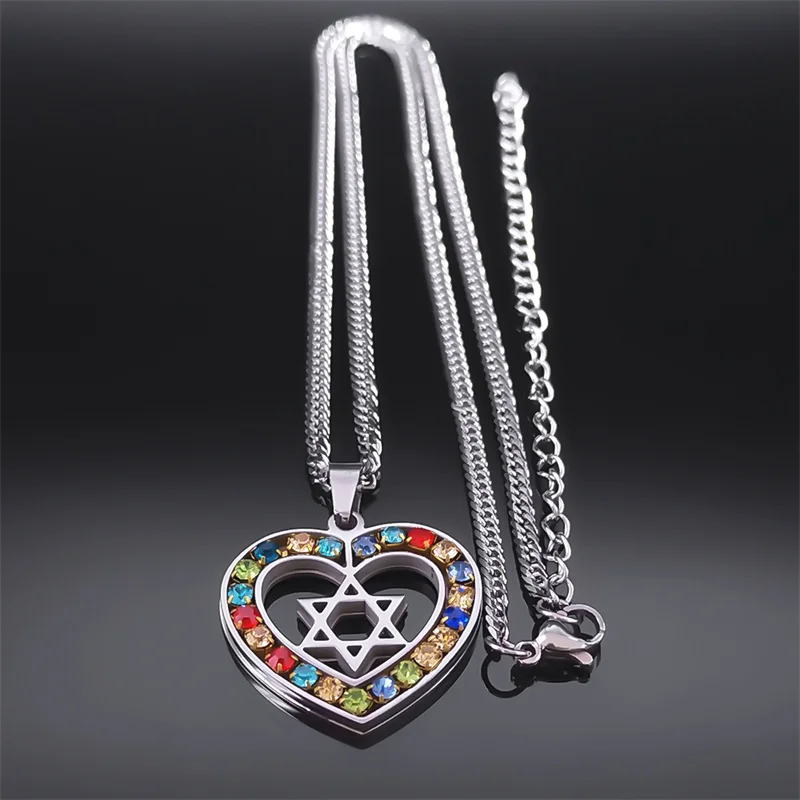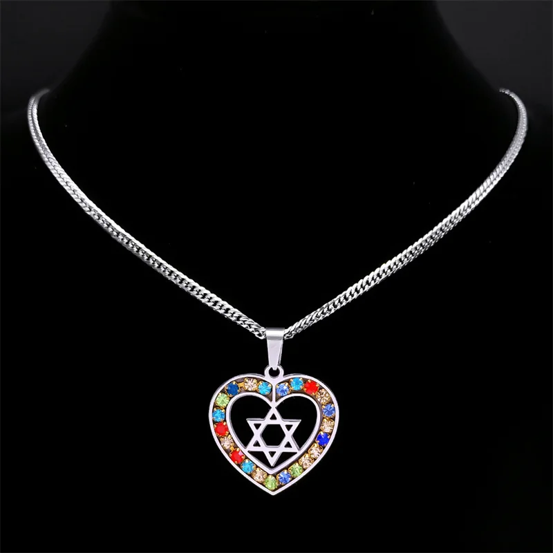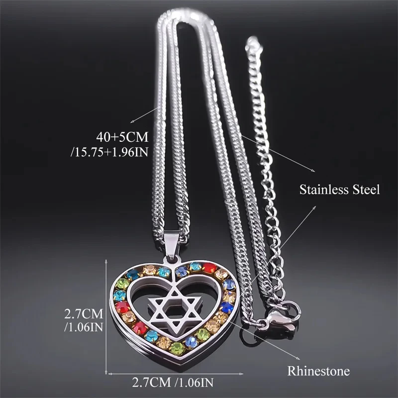 colar coração – estrela de David com pedras