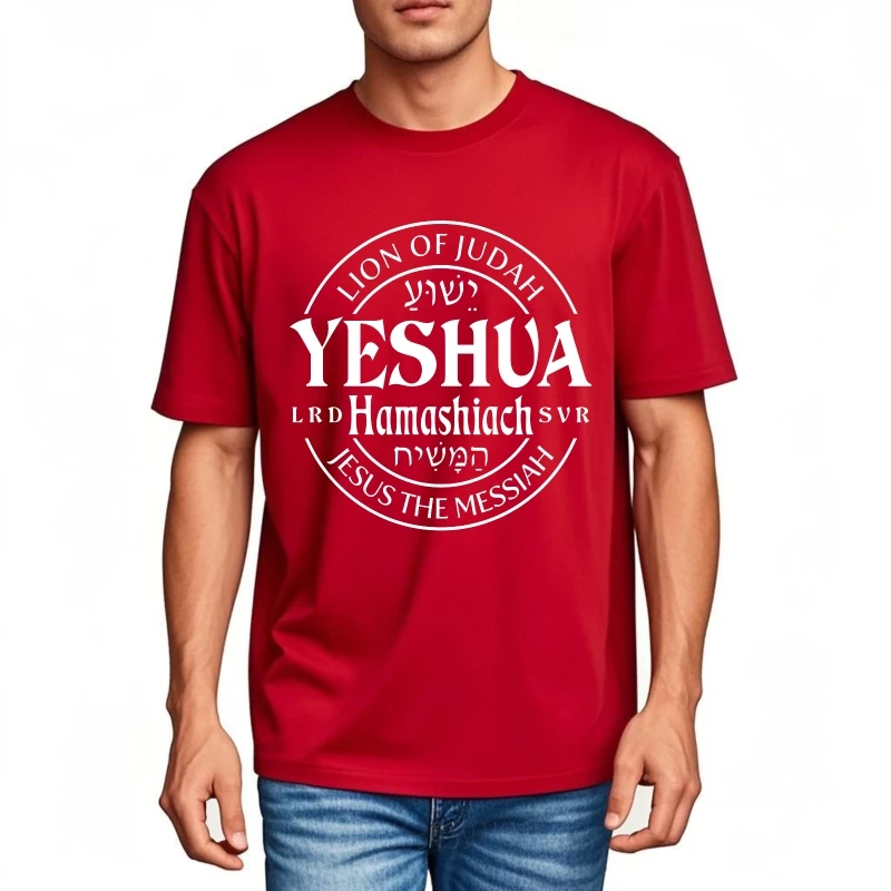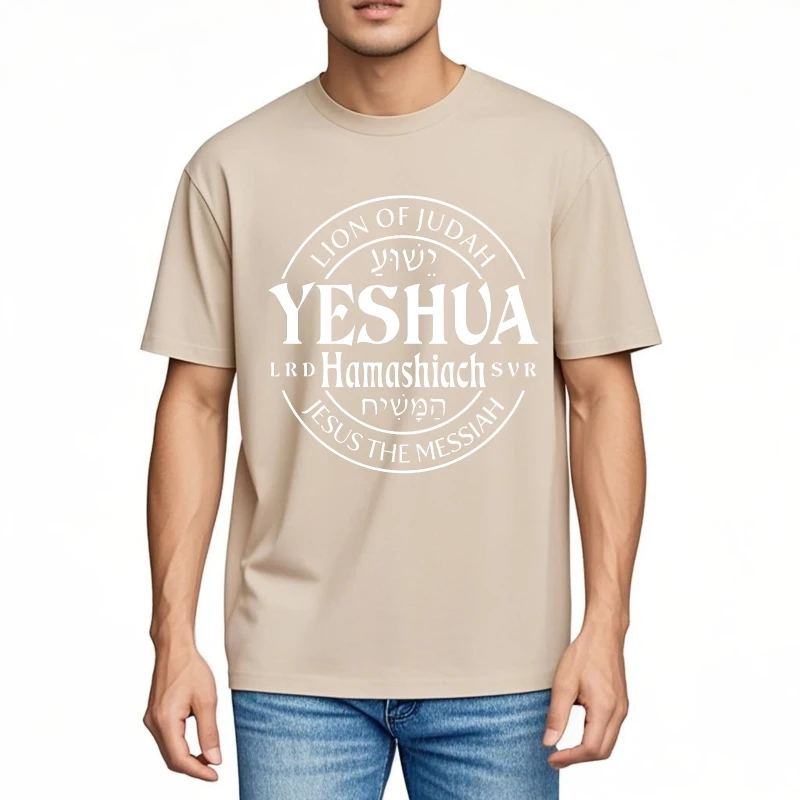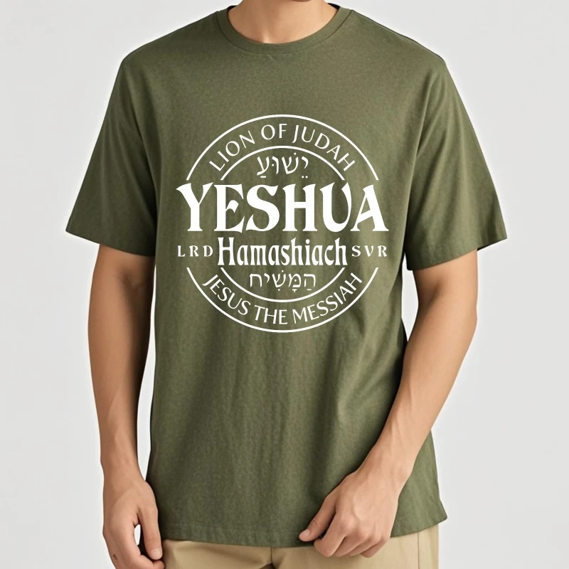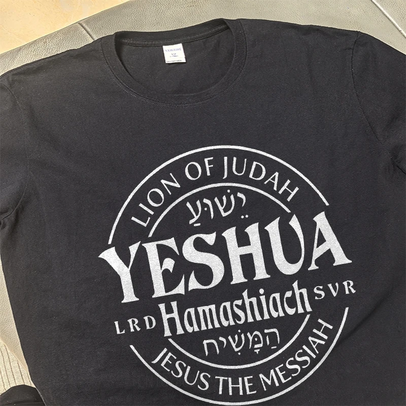 Camiseta unisex em malha especial de algodão, macia e confortável, com estampa "YESHUA". Um toque de estilo e significado para quem valoriza a identidade e a elegância do maior símbolo judaico
